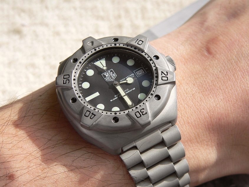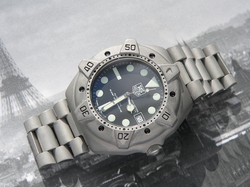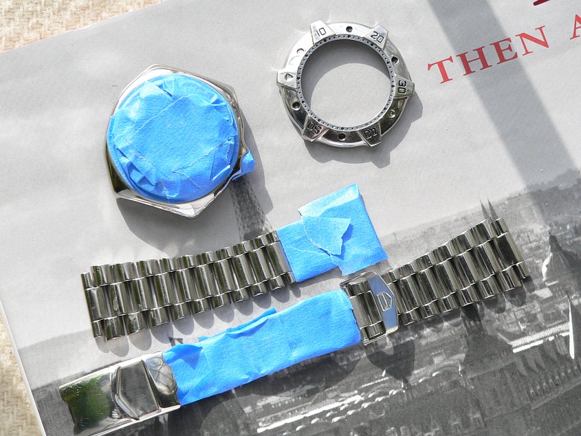 we start with a TAG-Heuer superprofessional diver which had the misfortune of being high-polished by the previous owner. i wanted to return it to a more toolwatch/tactical condition, more true to it's intended purpose.