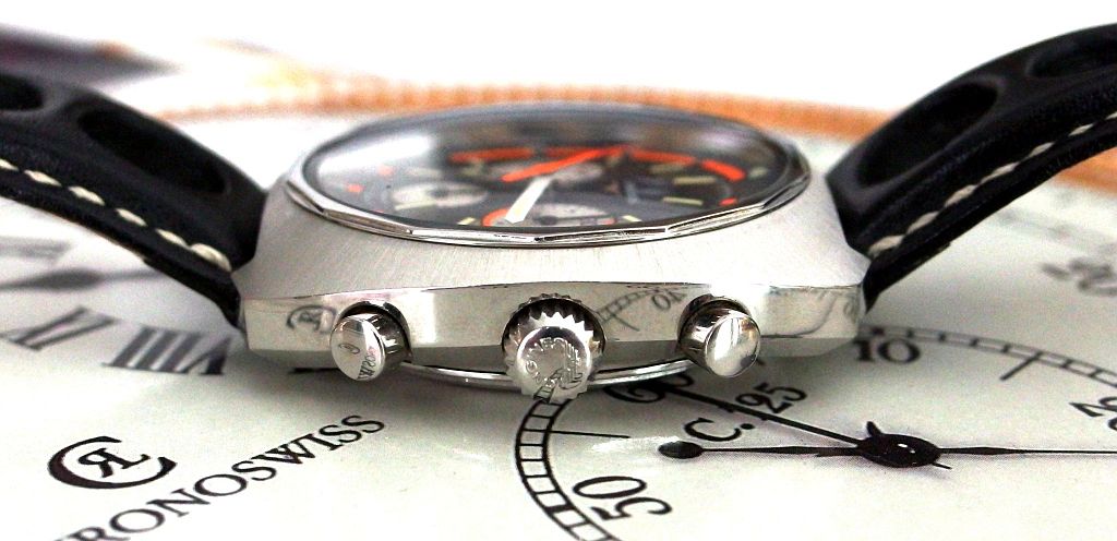 - This diver-chronograph was offered alongside a non-chronograph "ultra-chron" variant, with an identical case featuring dual-crowns and similar orange accents and a high-beat longines manufacture movement - such as this one.